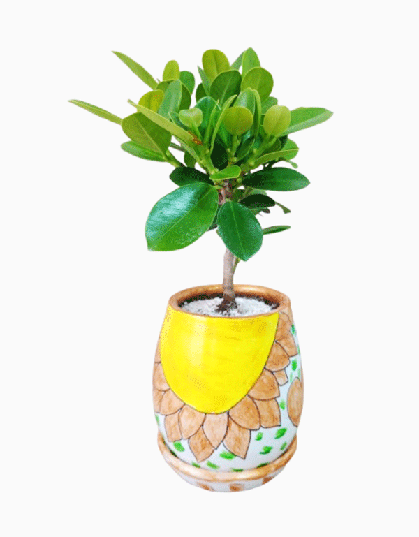 La maceta artística Nametual celebra la luz, la vida y el movimiento del colibrí: un diseño en tonos amarillos que simboliza la energía del sol y la fuerza interior que ilumina cada camino.