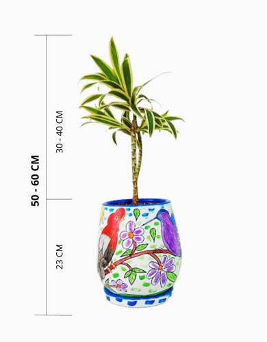 La Dracaena Lemon Lime o Drácena Limón es, por naturaleza, una planta que atrae todas las miradas. No solo por su forma estilizada y vertical, sino también por la intensidad de sus colores: franjas amarillas y verde limón. Se adapta fácilmente tanto a interiores como a zonas de semisombra. Es una planta muy resistente y apreciada en la decoración, lista para acompañarte.