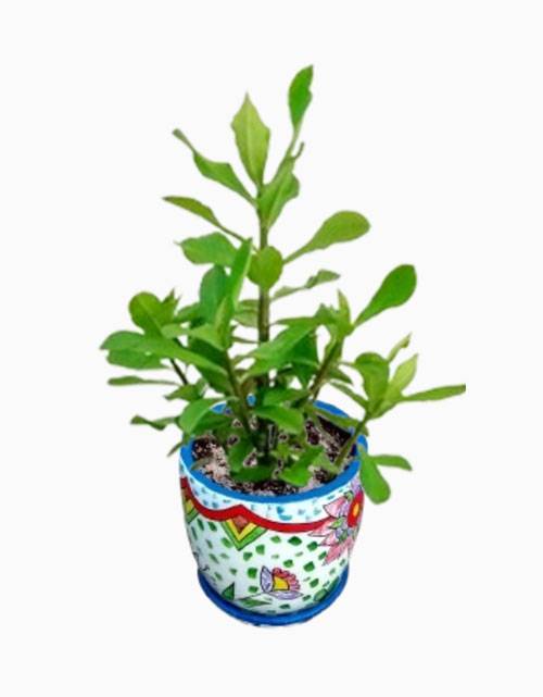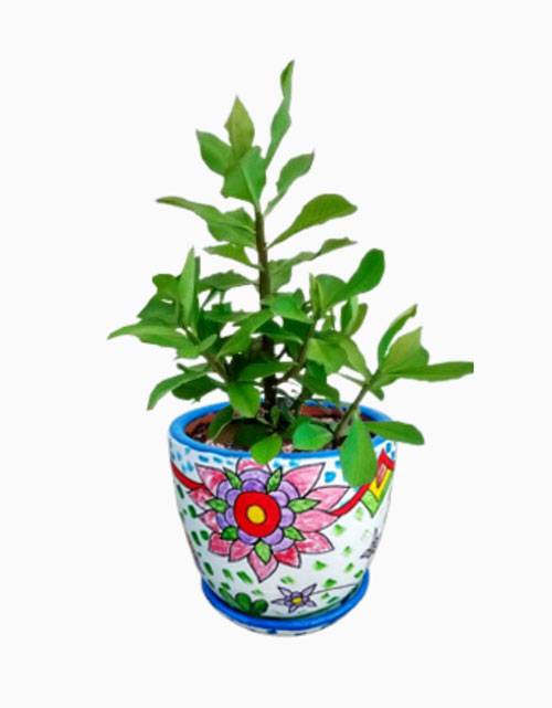 Synadenium grantii Hook, conocido como planta de la vida, en maceta artística pintada a mano por Nametual. Incluye sustrato y trasplante listo para decorar tu espacio. Ideal para regalar o decorar hogares y oficinas.